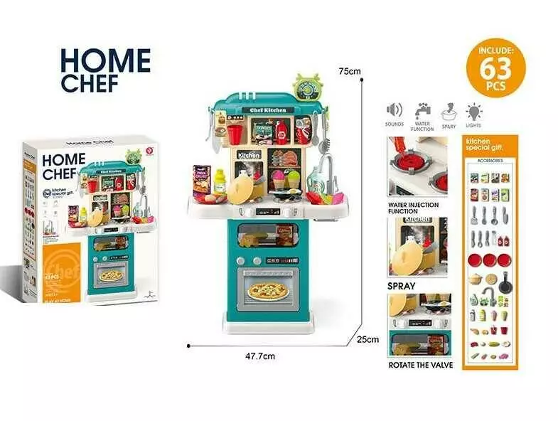 Кухня 922-184 (12) висота 75 см, 63 елементи, світло, звук, парогенератор, автоматична подача води, прибори, каструля, продукти, в коробці