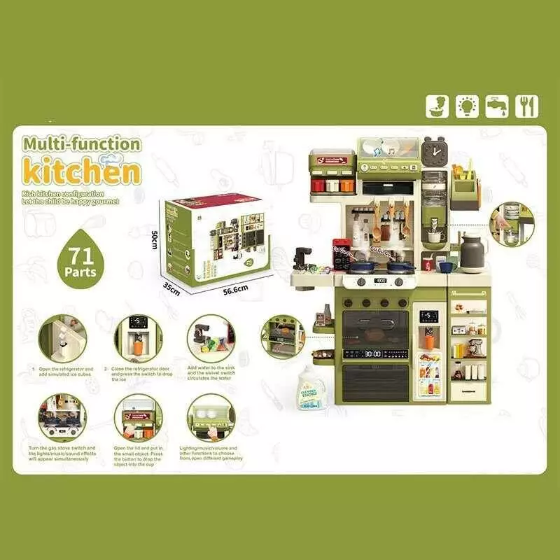 Кухня WY 512-1 A (3) 71 елемент, звуки, підсвічування, плита, духова шафа, кран, автоматична подача води, холодил, кулер, посуд, прод., в коробці