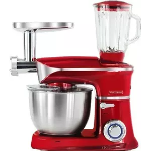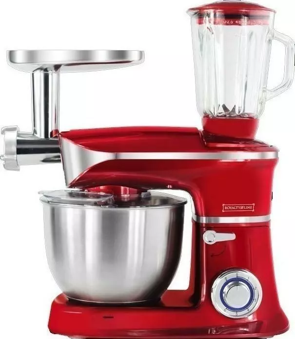 Кухонный комбайн непременно упростит работу на кухне, ведь он не только многофункциональный, но и достаточно быстро справляется с любой поставленной задачей. Мы предлагаем вашему вниманию кухонный комбайн от торговой марки Royalty Line, который успешно соединил в себе тестомес, мясорубку и блендер. Комбайн выполнен из прочных материалов, верх ― плотный пластик, чаша для замеса теста выполнены из нержавеющей стали, мясорубка и все аксессуары из прочного сплава металла, чаша блендера выполнена из толстого стекла. В комплекте ― стандартный набор насадок для мясорубки, крюк для замеса, насадка для взбивания и для непосредственного замеса теста. Мощность комбайна ― 1900 Вт. 6 режимов работы, плюс режим пульсации и плавная регулировка. Кухонный комбайн работаем сравнительно тихо. В комплекте есть прозрачная защита от брызг, объем чаши блендера 1,5 л, есть мерочная шкала, объем чаши для замеса ― 6,5 л. Мясорубку и блендер легко устанавливать. Комбайн быстро разбирается. У основания есть присоски, которые не допускают скольжения комбайна по любой поверхности.