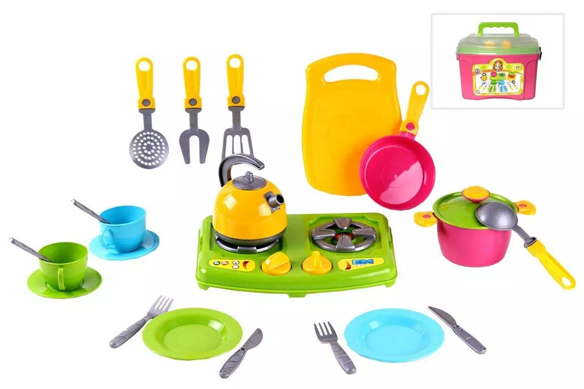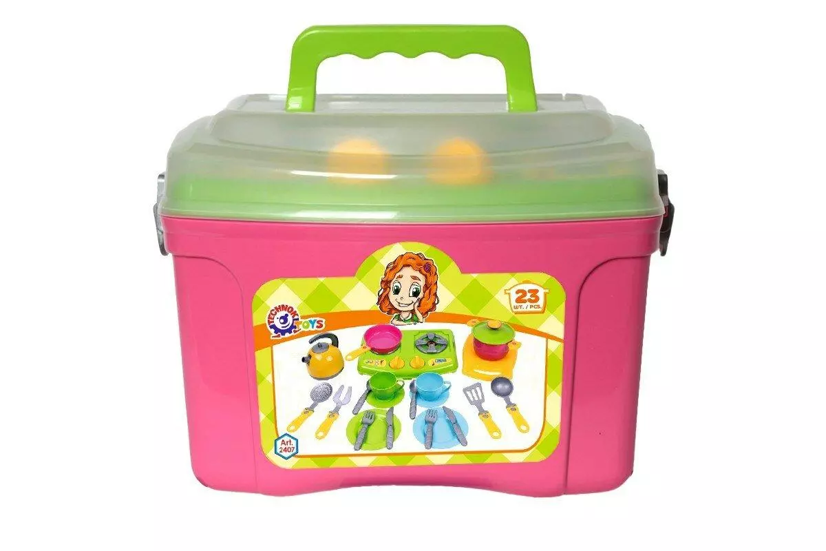 вместе со своей маленькой хозяйкой. Игрушечная посуда упакована в