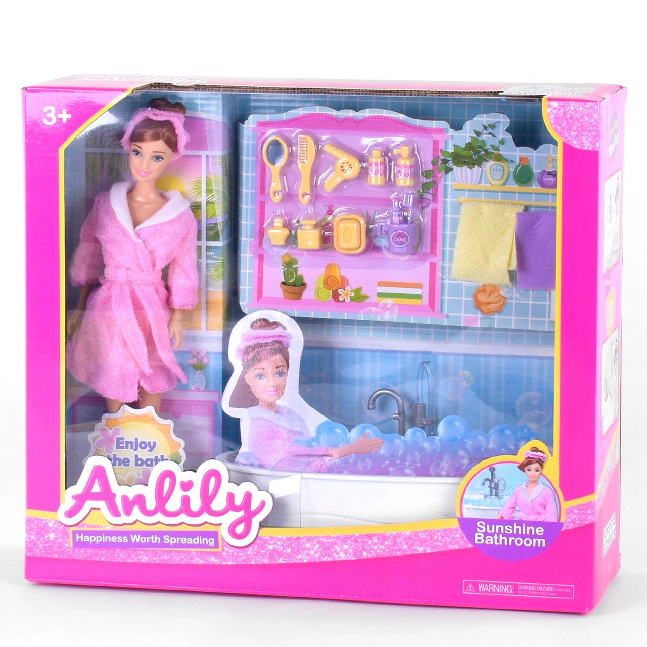 собой ванную комнату принцессы. Кукла с подвижными ручками будет