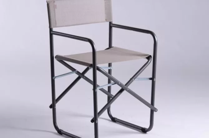 Режиссерское кресло имеет практичный и модный дизайн.