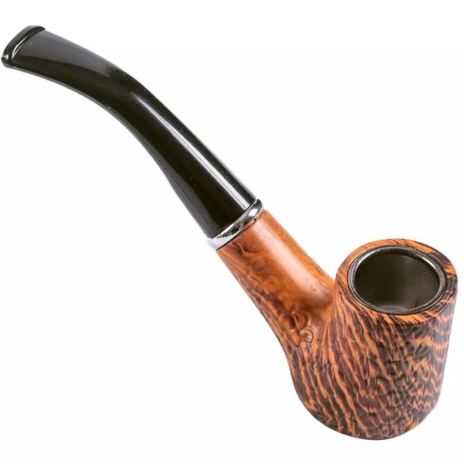 Курительная трубка в классическом стиле с оригинальной фактурой поверхности. Чаша выполнена в коричнево-рыжем оттенке с рельефным узором, устойчивым к высоким температурам. Внутри — металлическая вставка камеры для удобства и долговечности. Изогнутый глянцевый мундштук из пластика обеспечивает комфортное использование.