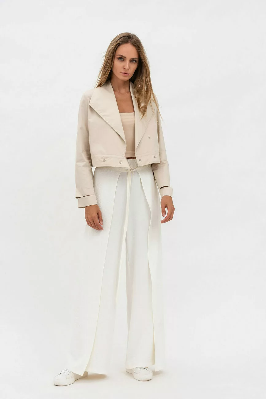 приталеному силуеті з довжиною злегка нижче талії, акцентний комір,