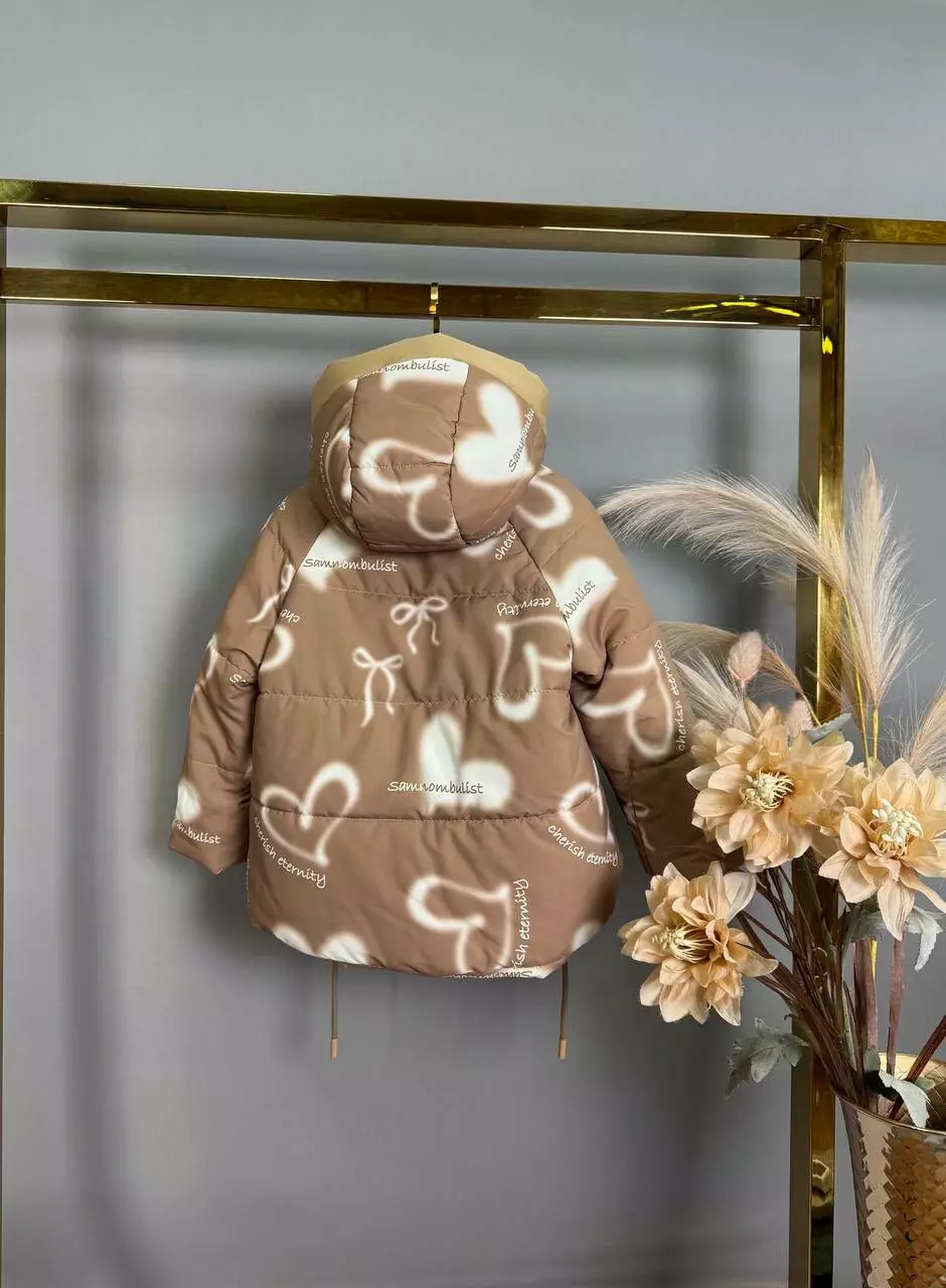 Куртка білі сердечка дів. коричневий плащівка М-856 TH&TY
