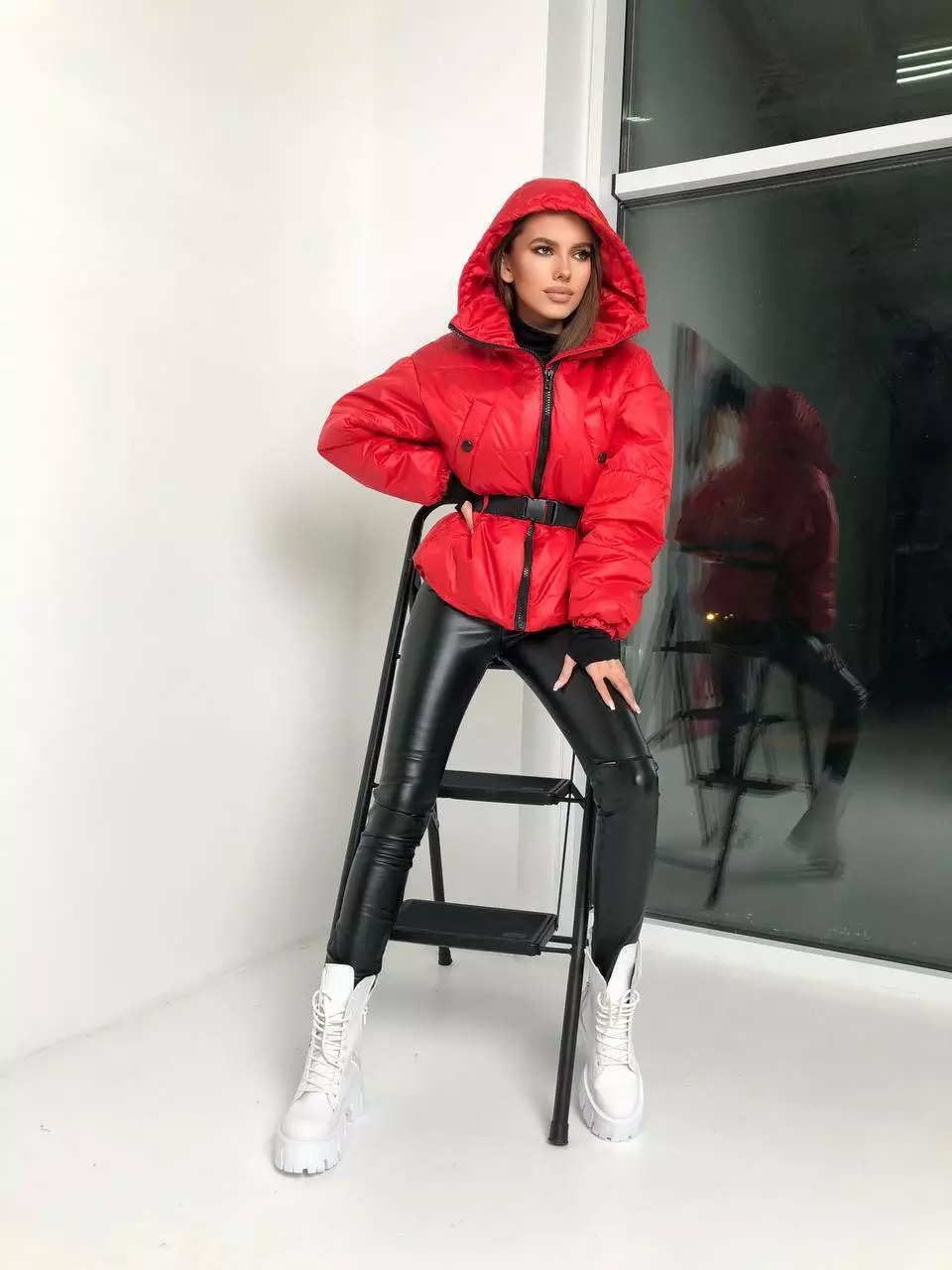 Коротка куртка під пояс-гумку. Знімний капюшон, 2 кишені на кнопках Тканина: плащівка