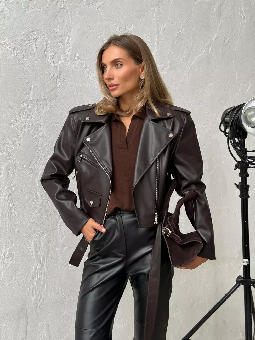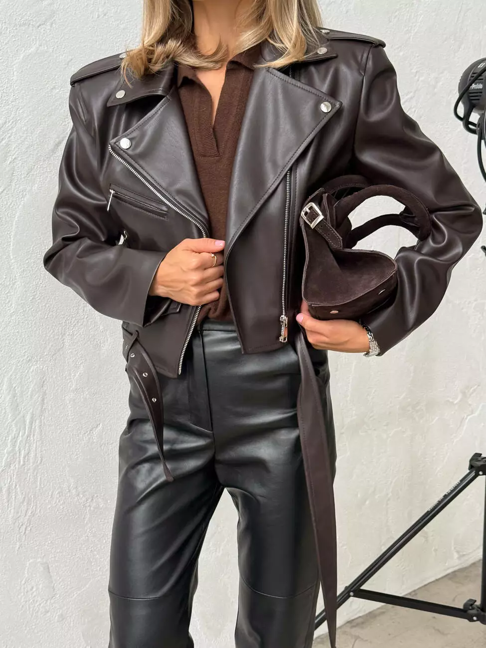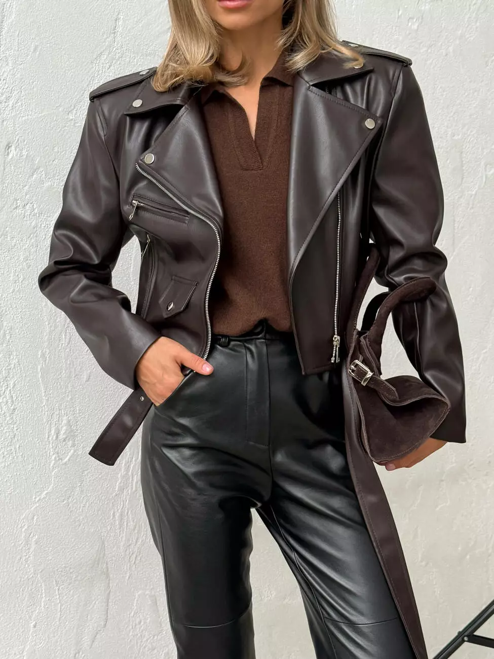 Куртка -косуха з ОБʼЄМНИМИ ПЛЕЧИМА колір шоколад