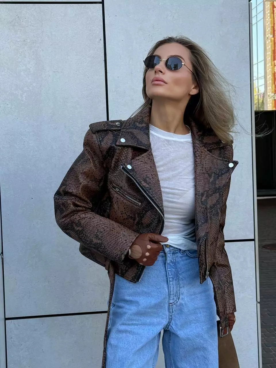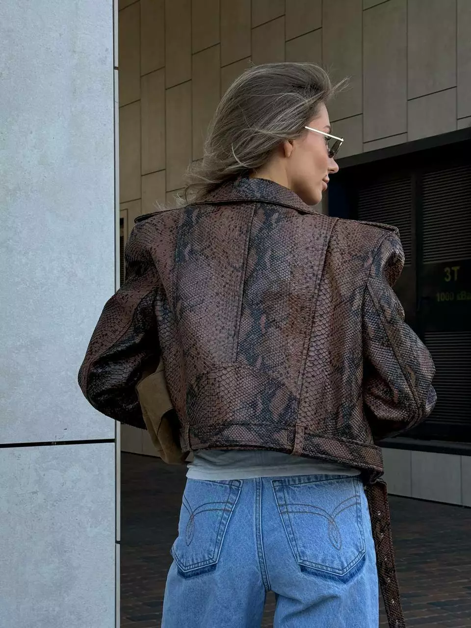 Куртка -косуха з ОБʼЄМНИМИ ПЛЕЧИМА колір пітон коричневий