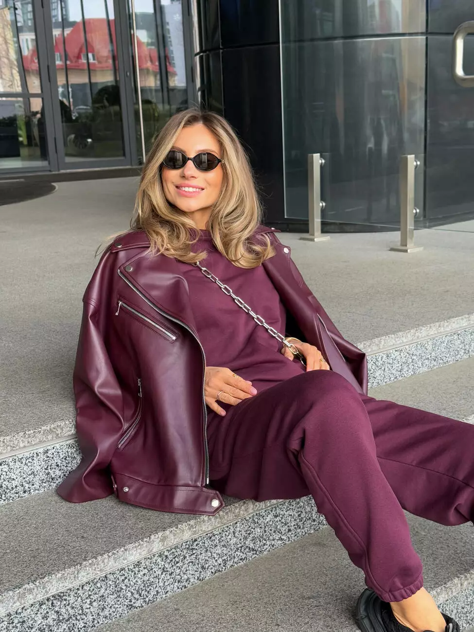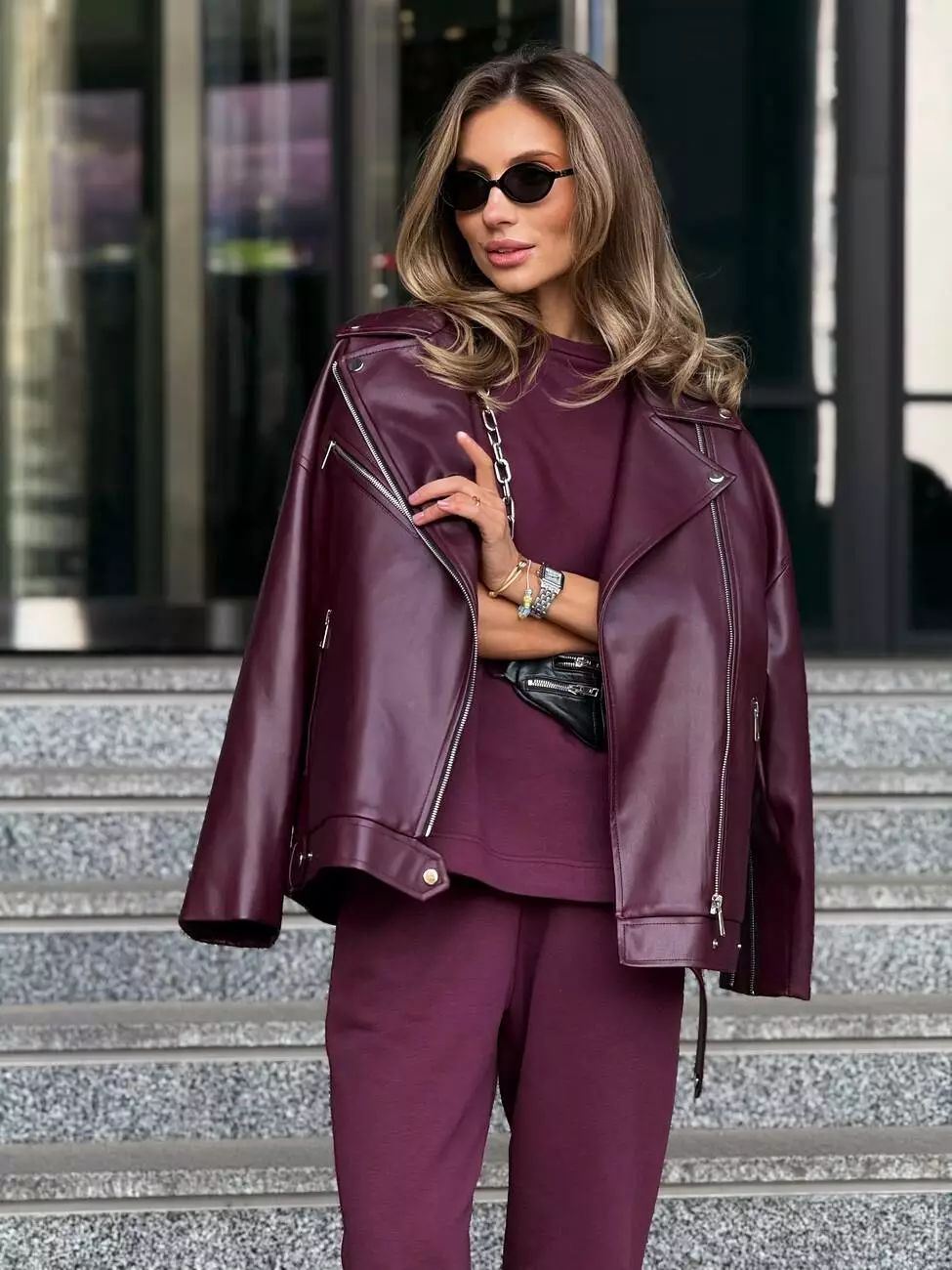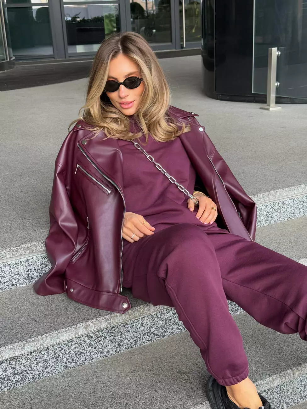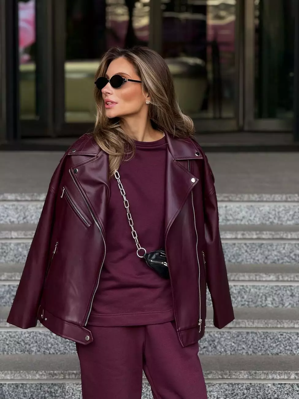 Стильна оверсайз куртка, матова, з низом, що регулюється (без ременя)! Легка та стильна Тканина: матова еко-шкіра Розмір: 42 - 46