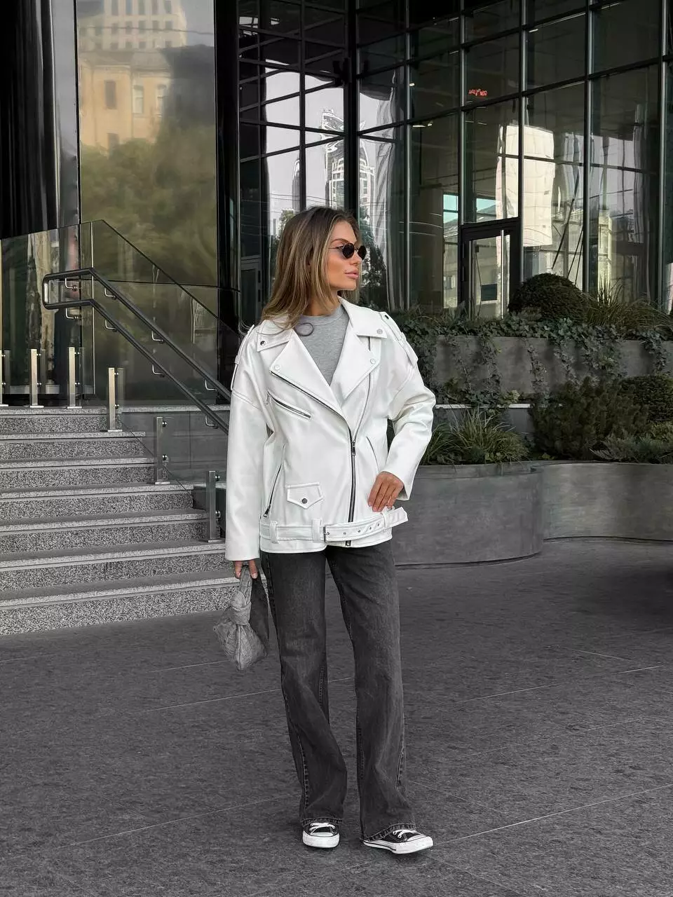 Оверсайз подовжена куртка, виконана з люксової екошкіри та дуже якісного пошиття  Металева фурнітура, всі робочі кишені, пояс в колір виробу йде у комплекті