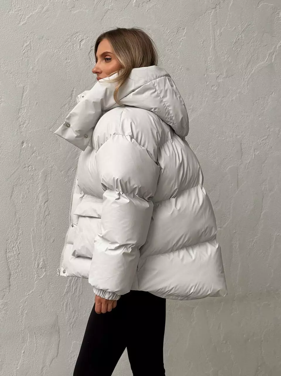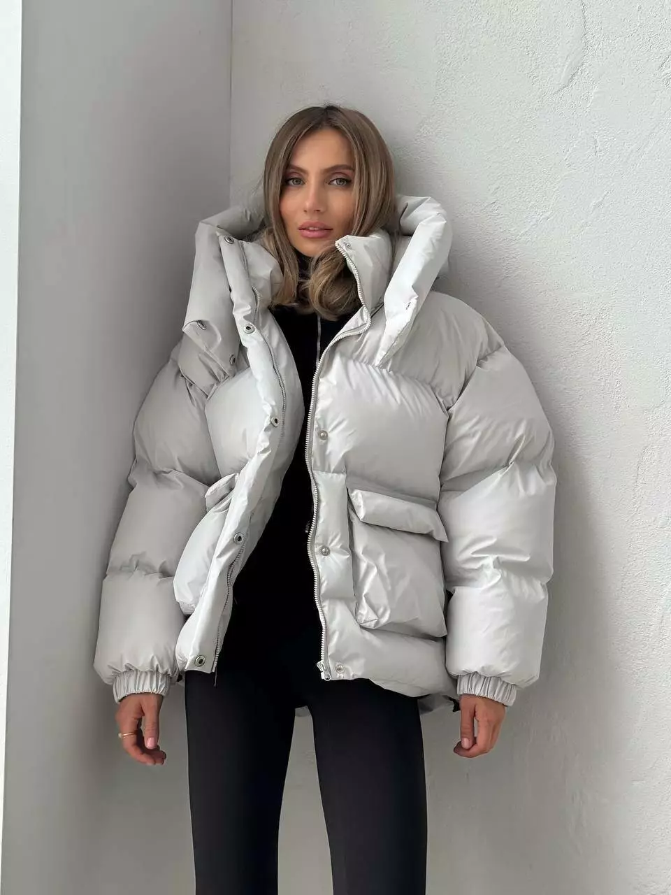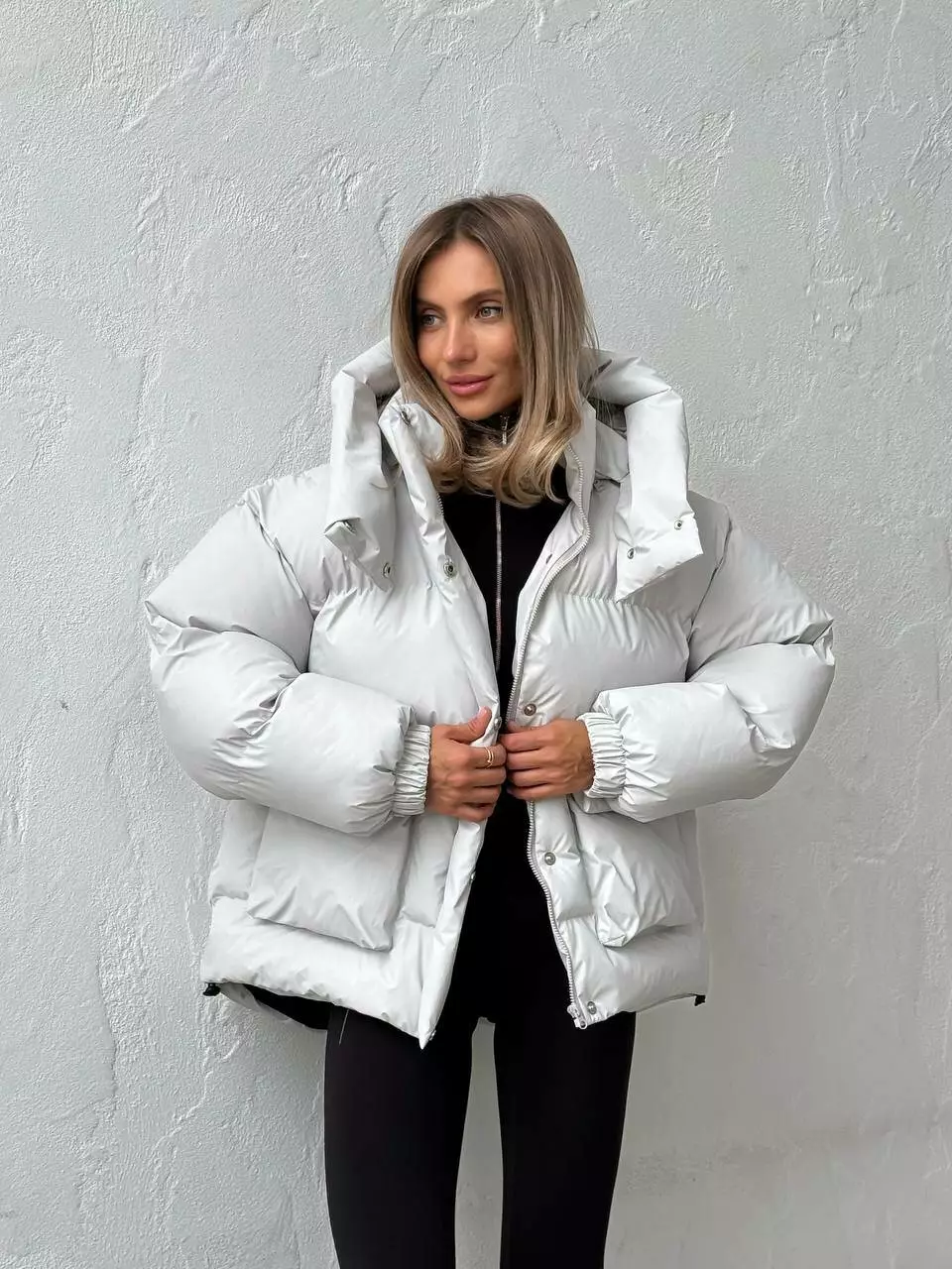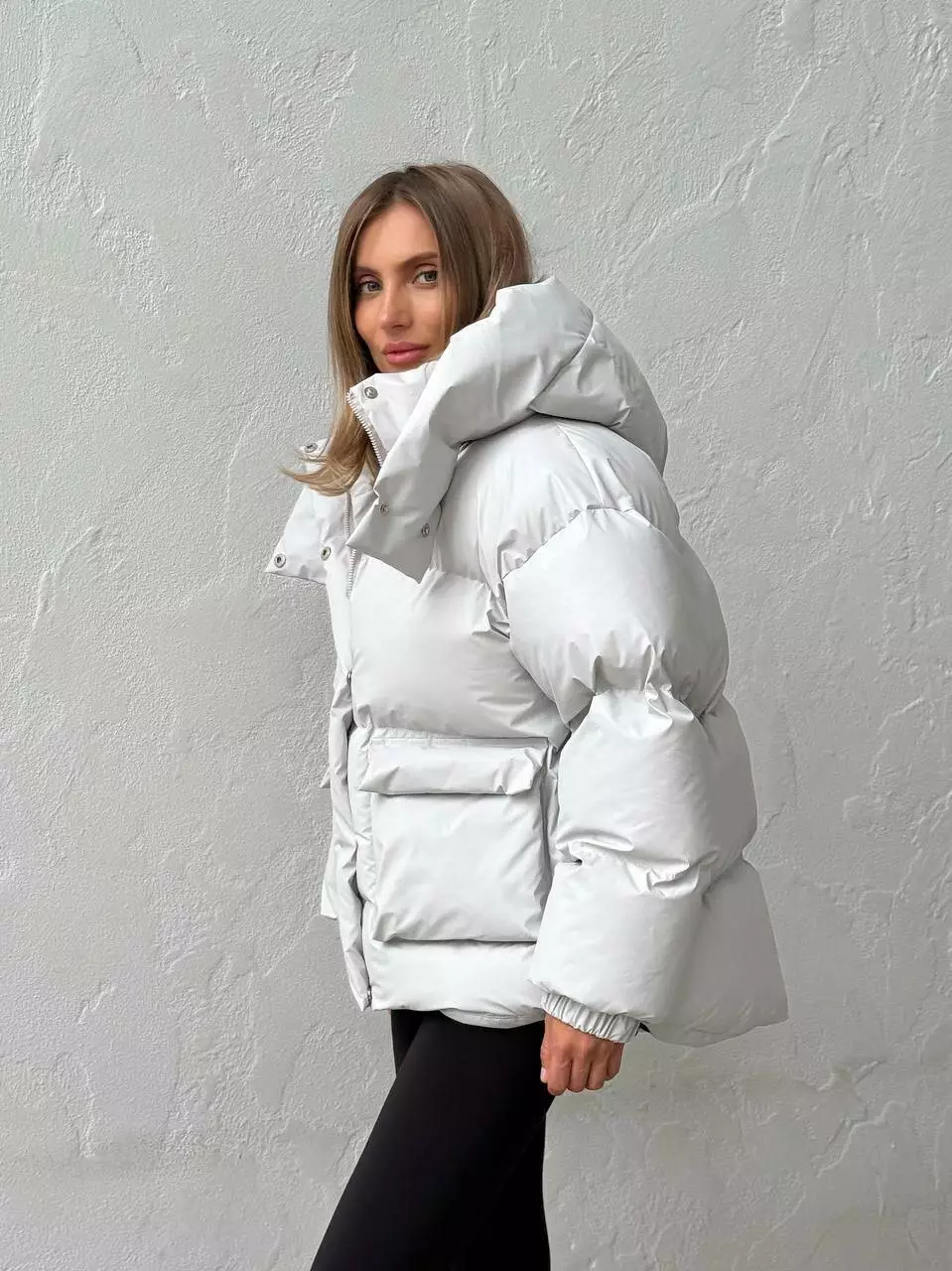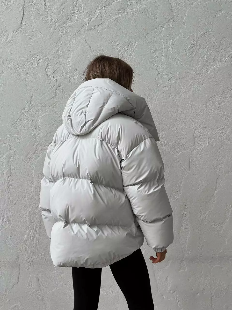 Зимовий укорочений пуховик, виконаний з плащівки на мембрані, що є непродувною і водонепроникаючою. Капюшон знімається