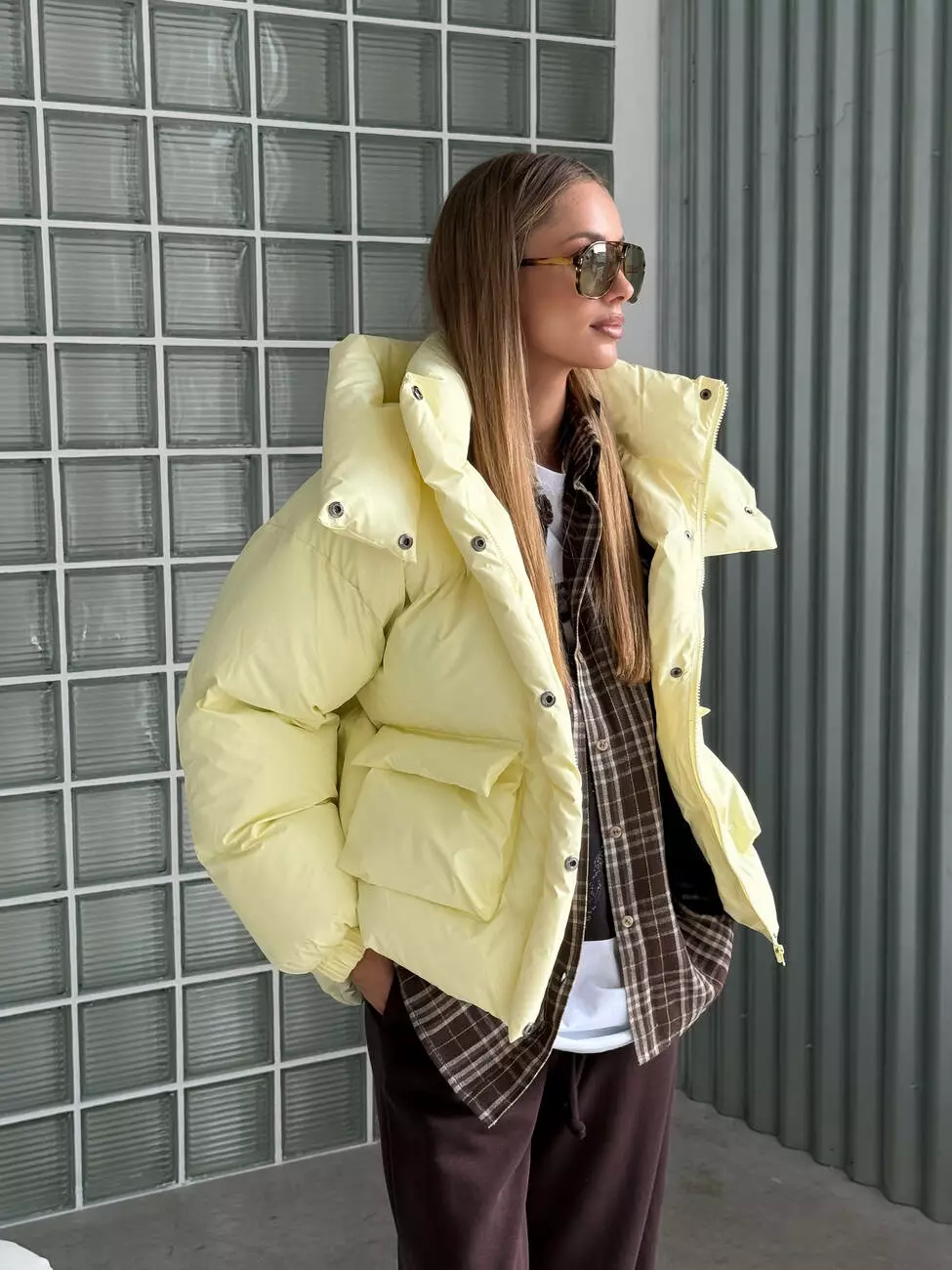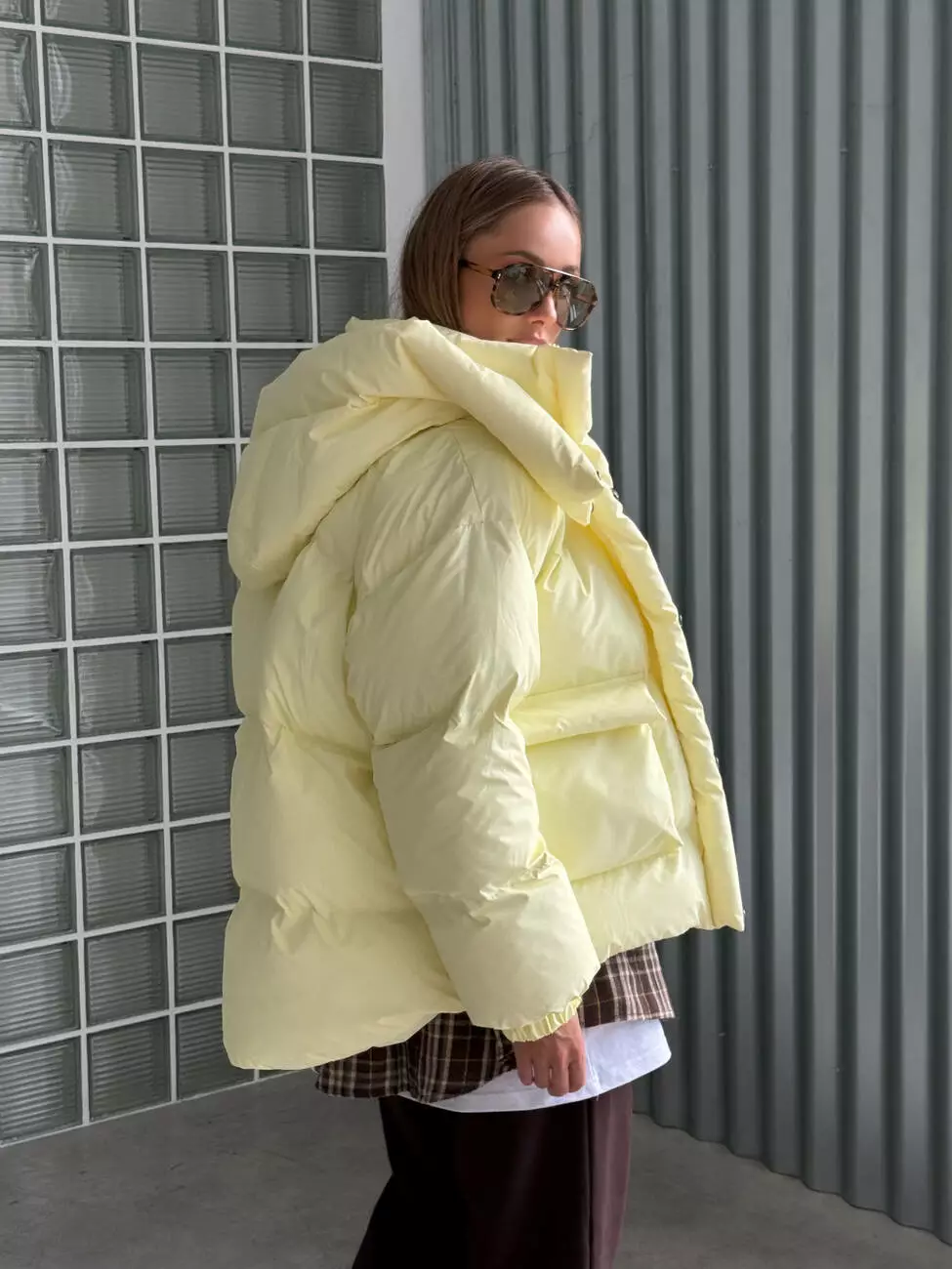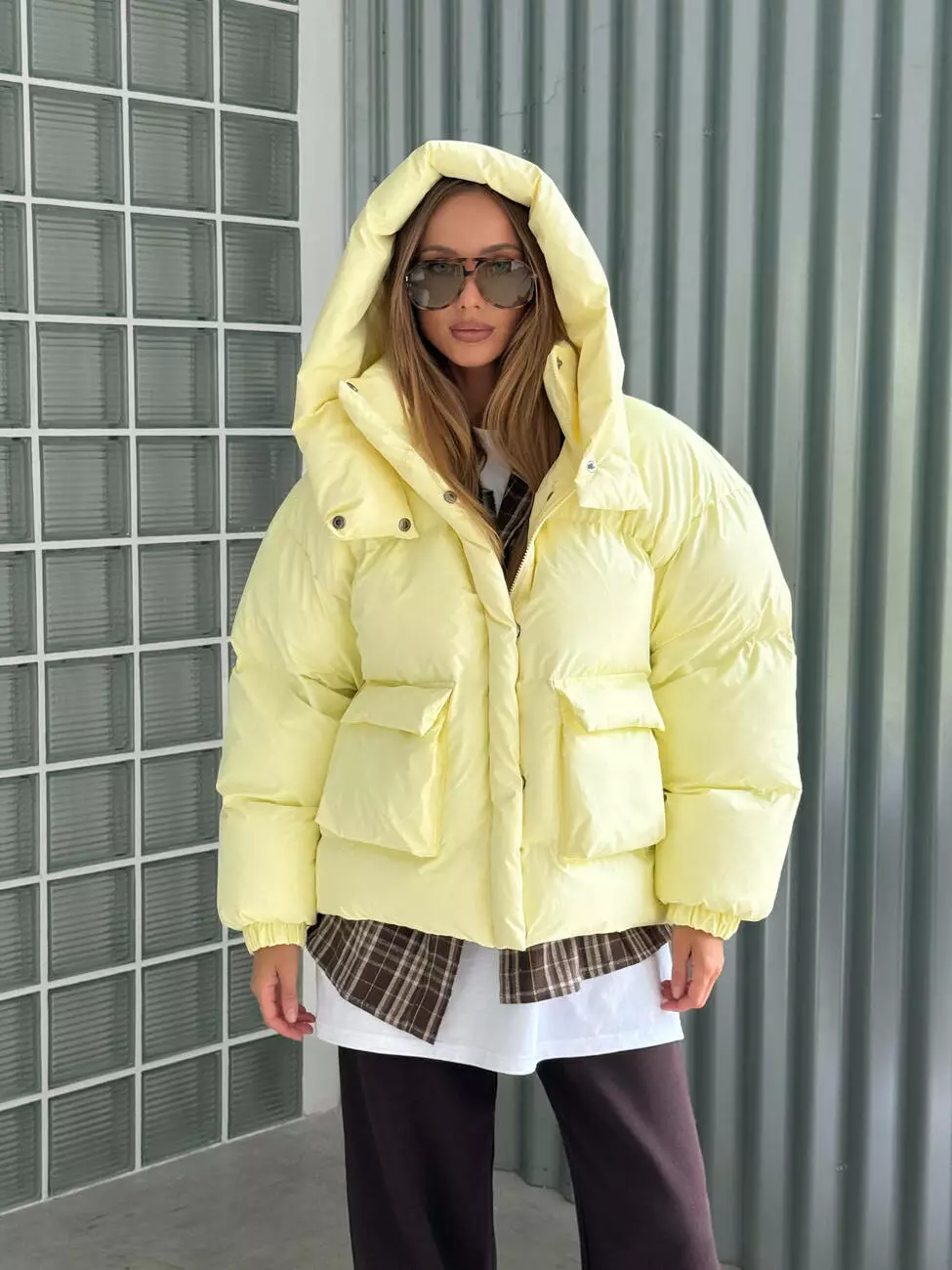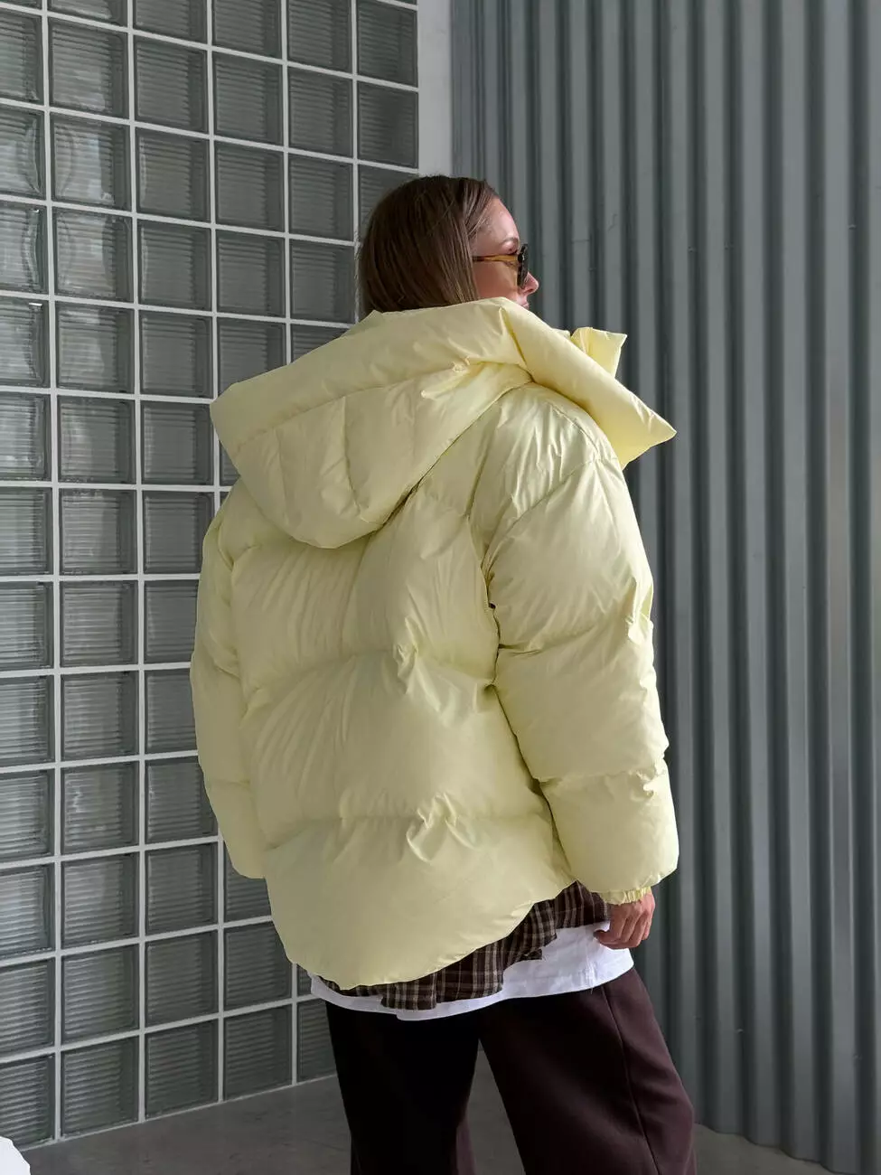 Зимовий укорочений пуховик, виконаний з плащівки на мембрані, що є непродувною і водонепроникаючою. Капюшон знімається