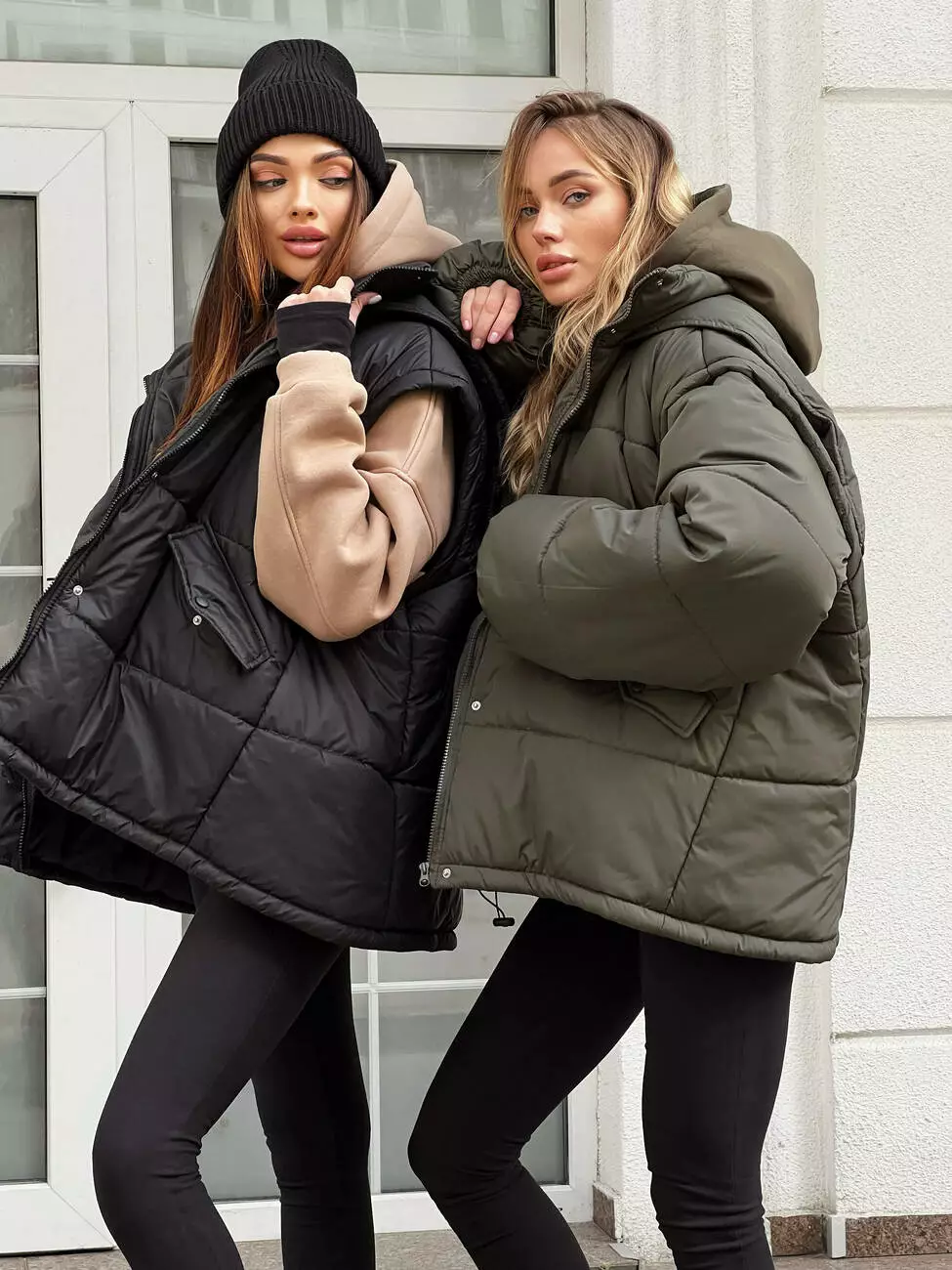 Незвичайна куртка-трансформер 2 в 1, рукава відстібаються і куртка перетворюється на жилет.