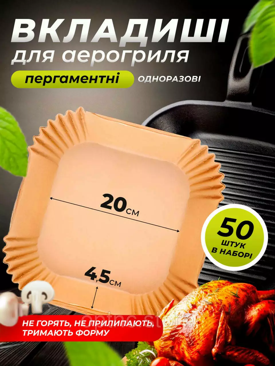 Квадратные бумажные формы 50 шт 20х4.5 см для аэрогриля Air Fryer, силиконизированный пергамент для выпекания