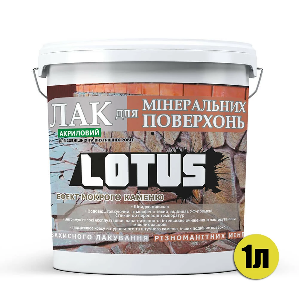 Лак акриловый для минеральных поверхностей Мокрый камень LOTUS прозрачный 1л