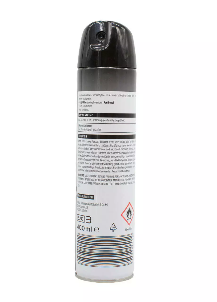 Аерозольний лак для волосся має 5-й рівень фіксації. Підходить для