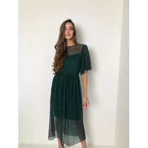 Лаконічна трикотажна сукня Mira midi з сіткою-гофре в горошок колір пляшка