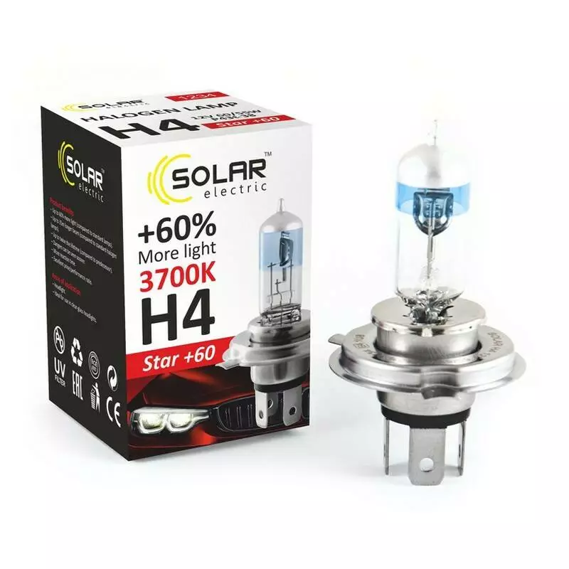 Лампа галогенная цоколь H4 Solar + 60% 1шт (1234)