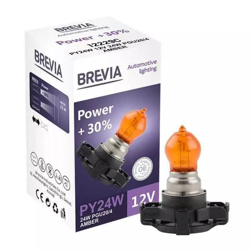 <p>Brevia PY24W 12V 24V PGU20/4 AMBER Power +30%