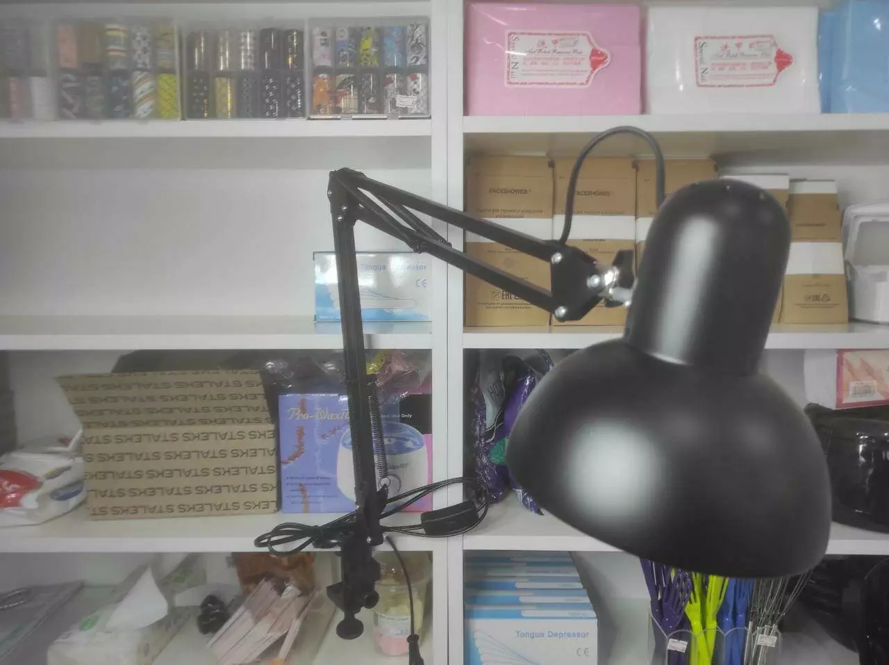 Лампа настольная с зажимом чёрная, лампа на струбцине, лампочка настольная, настольная лампа