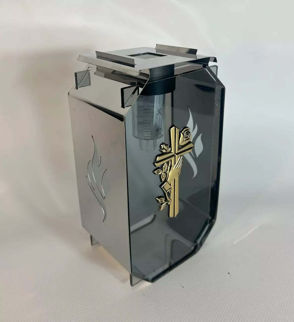 Лампадка металічна з сонячним елементом день-ніч. ДxШxВ: 80x11x195 мм.