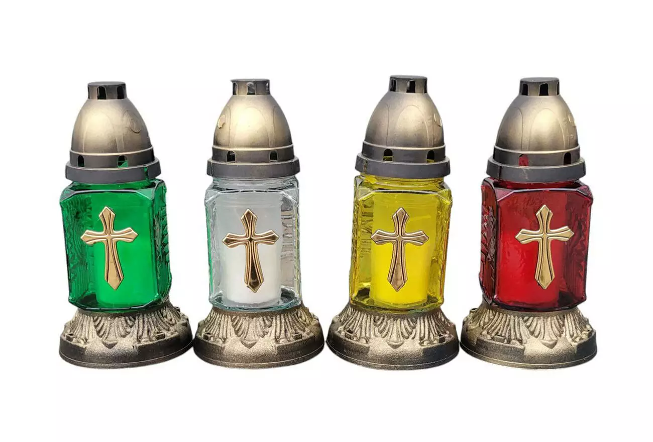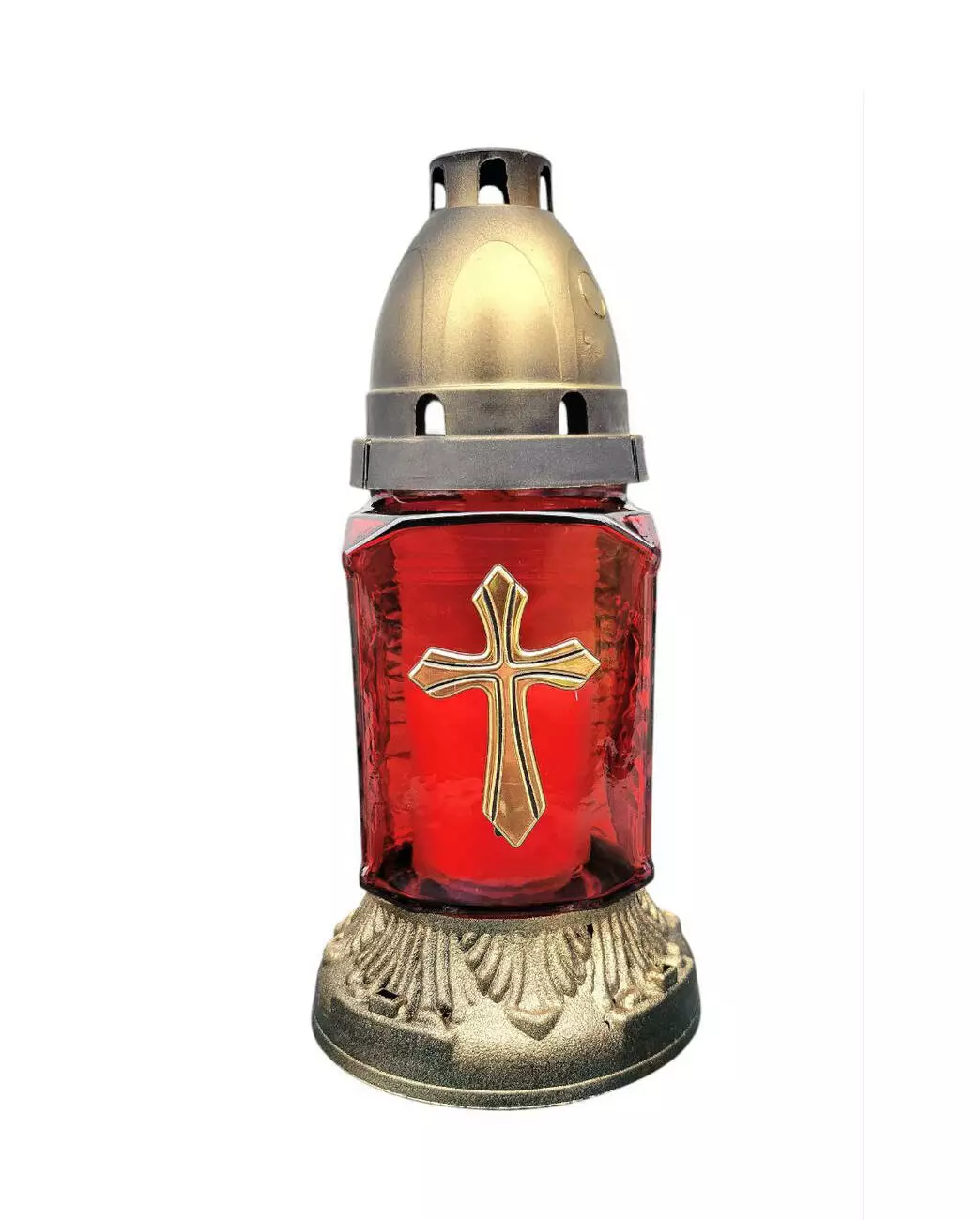 Лампадка хрест виготовлена зі скла, з пластиковою кришечкою та