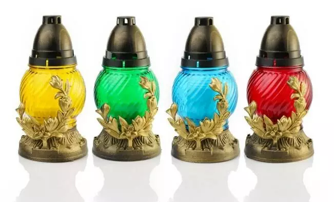 Лампадка виготовлена зі скла, з пластиковою кришечкою та пластиковою підставкою. Висота 220 мм, час горіння парафінової запаски - 24 годин, 8 шт в упаковці.