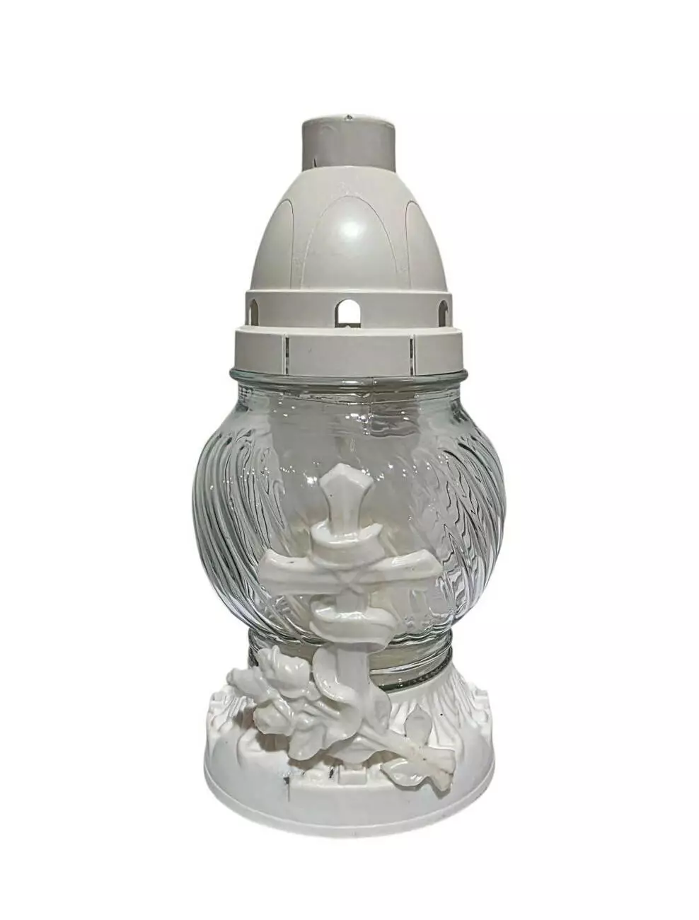 Лампадка хрест на овалі виготовлена зі скла, з пластиковою