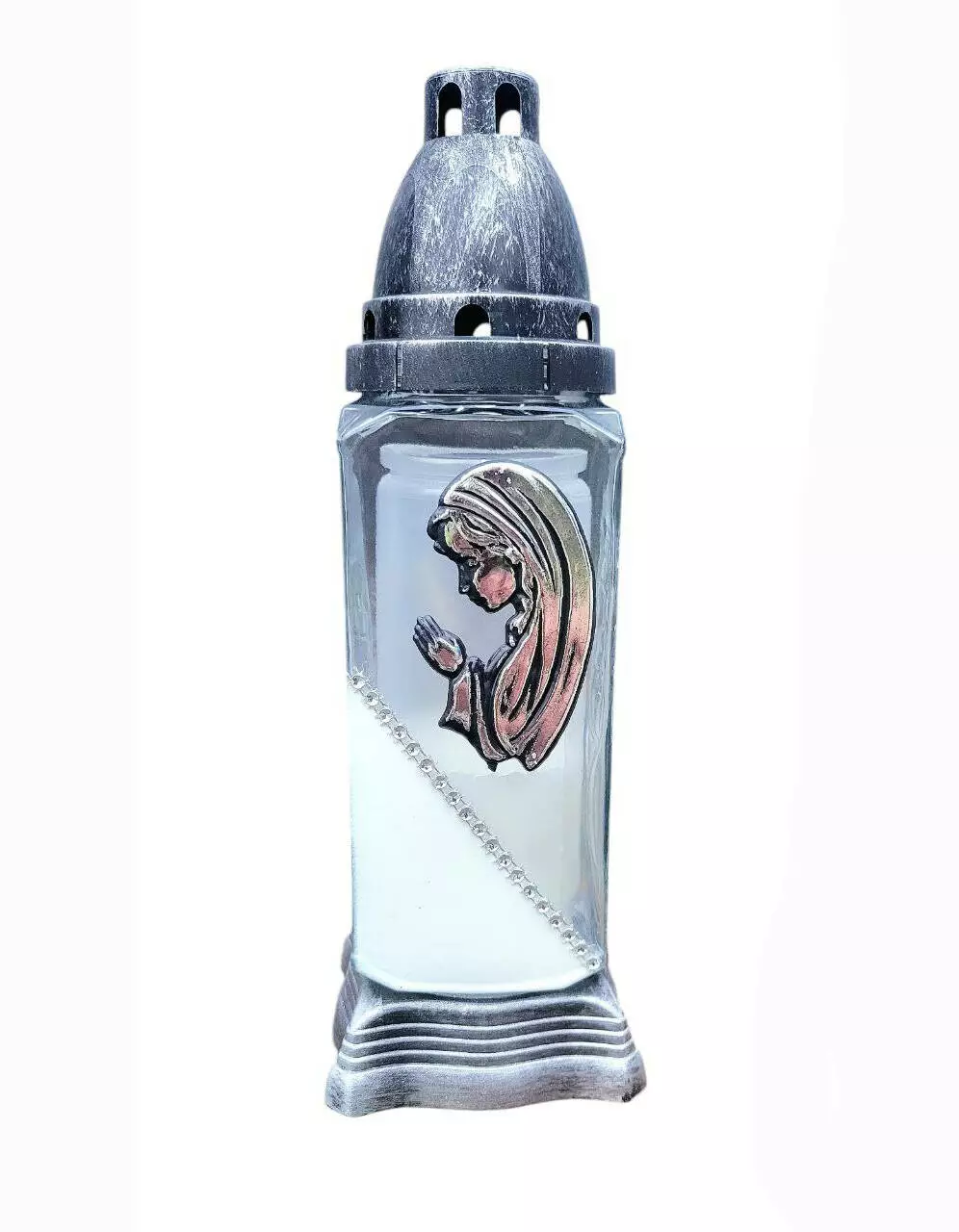 Лампадка виготовлена зі скла, з пластиковою кришечкою та