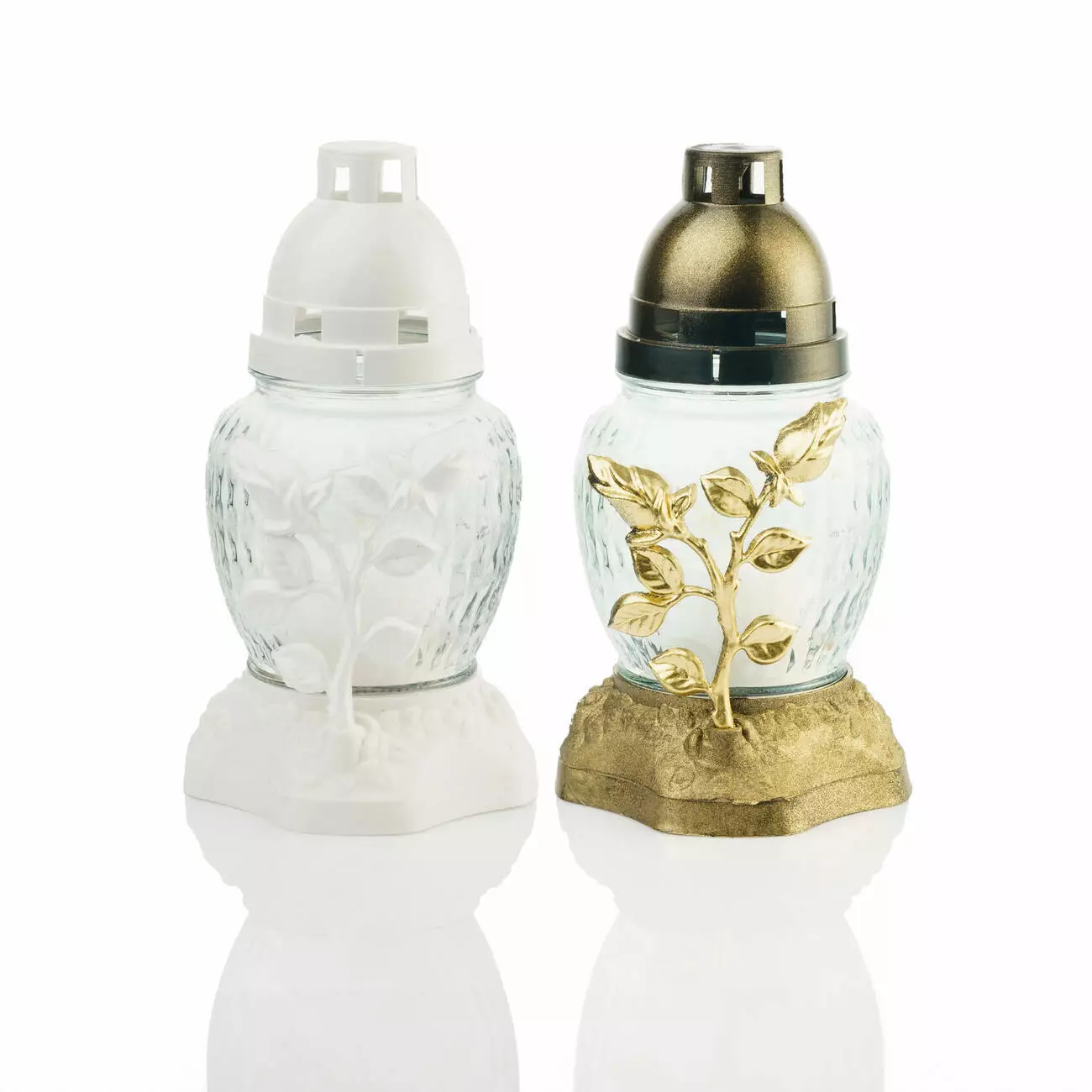 Лампадка виготовлена зі скла з трояндою, з пластиковою кришечкою та