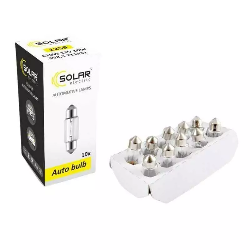 Лампы галогенные Solar C10W T11x31 12V 10 штук (одна упаковка) (1259)