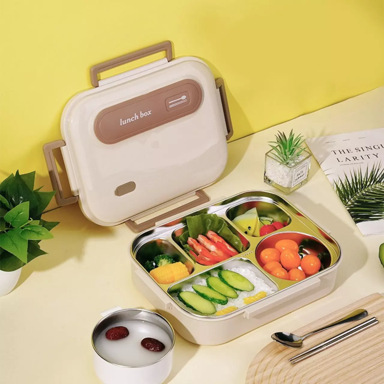 Ланч-бокс доповнений столовими приборами з нержавіючої сталі: