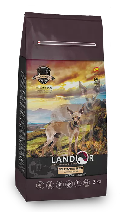 LANDOR Повнораціонний сухий корм для дорослих собак дрібних порід ягня з рисом 3 кг