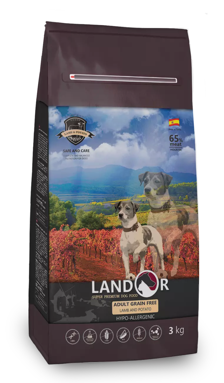 LANDOR Повнораціонний сухий корм для дорослих собак всіх порід беззерновой ягня з бататом 3 кг