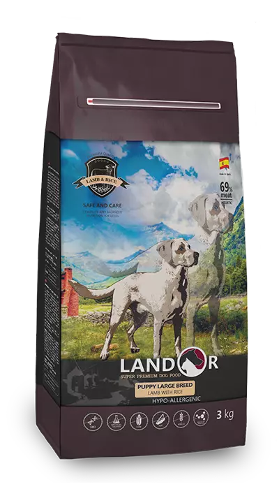 LANDOR Повнораціонний сухий корм для цуценят великих порід ягня з рисом 3 кг