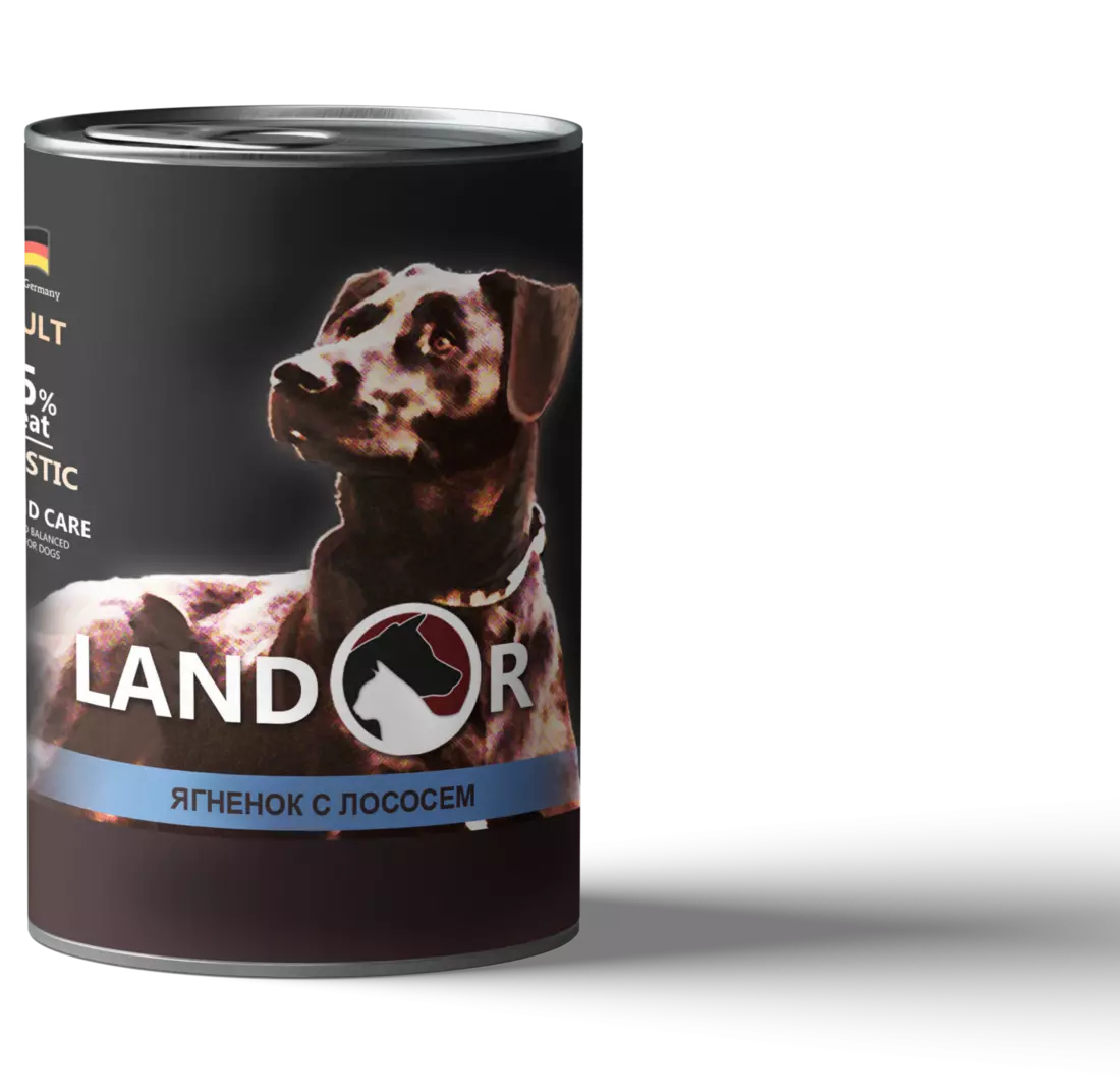 Повноцінний збалансований вологий корм для дорослих собак з ягням та лососем. Склад: ягня 45%, лосось 20%, бульйон 28,9%, батат 5%, мінерали 1%, олія сафлорова 0,1% Аналітичний склад: Сирий білок-10,7%, сирий жир-6,6%, сира зола-2,5%, сира клітковина-0,4%, вологість-76% Кормові добавки (на 1 кг): Вітаміни і мінерали: Вітамін Е 20 мг, Вітамін В1 10 мг, Вітамін В2 6 мг, Вітамін В6 2 мг, Вітамін В12 0,075 мг, Нікотинамід 15 мг, Кальцію пантотенат 9 мг, Кислота фолієва 0,35 мг, Біотин 0,3 мг, Холіну хлорид 1200 мг, Цинку сульфат моногідрат 25 мг, Магній 1,4 мг, Кальцію йодад 0,75 мг Енергетична цінність: 113,44 ккал/100г. Виготовлений з свіжого м'яса та відбірних компонентів. Не містить сої, барвників, штучних ароматизаторів та консервантів. Склад: ягня 45%, лосось 20%, бульйон 28,9%, батат 5%, мінерали 1%, олія сафлорова 0,1% Аналітичний склад: Сирий білок-10,7%, сирий жир-6,6%, сира зола-2,5%, сира клітковина-0,4%, вологість-76% Кормові добавки (на 1 кг): Вітаміни і мінерали: Вітамін Е 20 мг, Вітамін В1 10 мг, Вітамін В2 6 мг, Вітамін В6 2 мг, Вітамін В12 0,075 мг, Нікотинамід 15 мг, Кальцію пантотенат 9 мг, Кислота фолієва 0,35 мг, Біотин 0,3 мг, Холіну хлорид 1200 мг, Цинку сульфат моногідрат 25 мг, Магній 1,4 мг, Кальцію йодад 0,75 мг Енергетична цінність: 113,44 ккал/100г