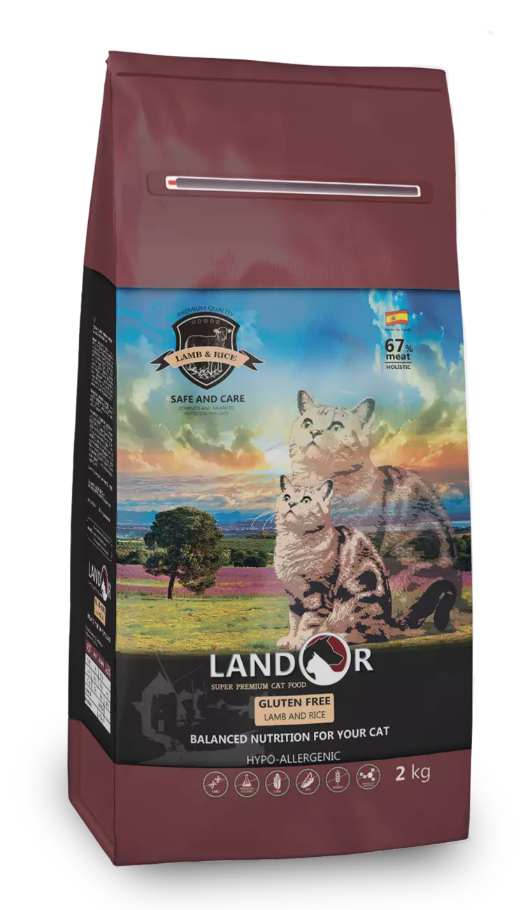 LANDOR Сух беззерн для котів з ф-ю контролю утворення комків шерсті та ваги Ягня з з бататом 10 кг