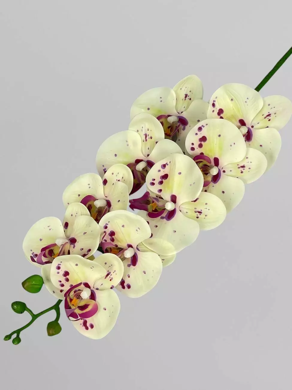 Латексна орхідея Фаленопсіс на 9 суцвіть, блідо-жовтий з фіолетовими крапочками, 96 см