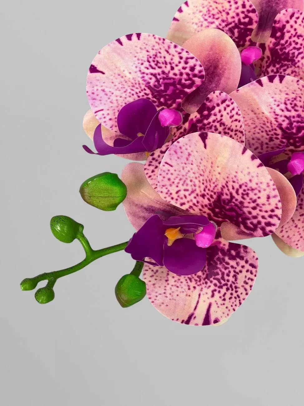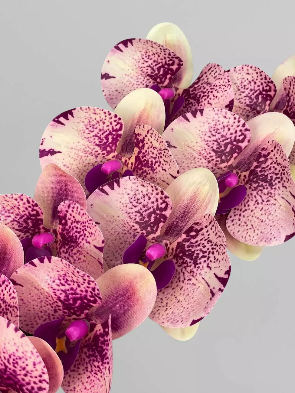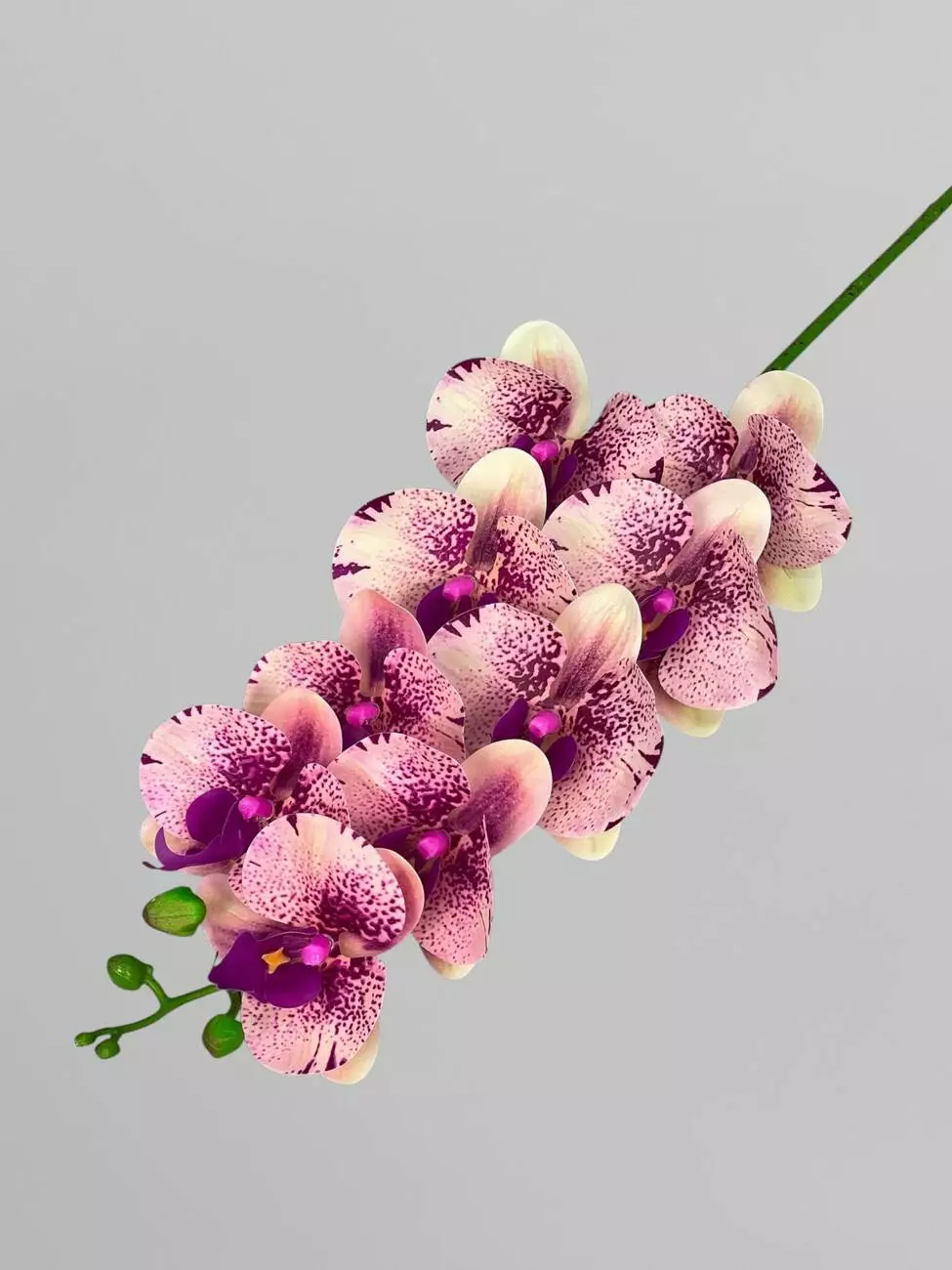 Латексна орхідея Фаленопсіс на 9 суцвіть, кремовий з бузковим принтом, 96 см