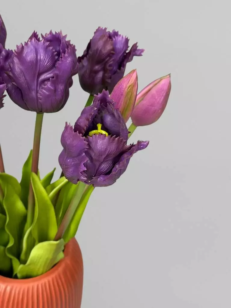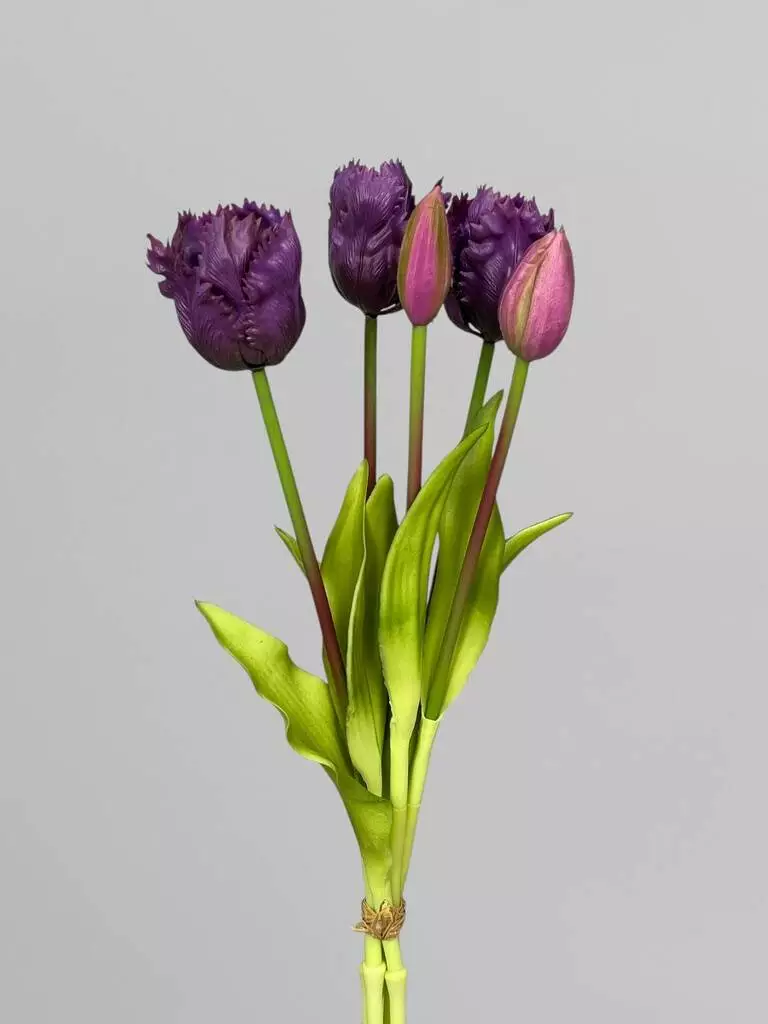 Латексні кучеряві тюльпани, букет штучних квітів, 5 шт, фіолетовий, 40 см