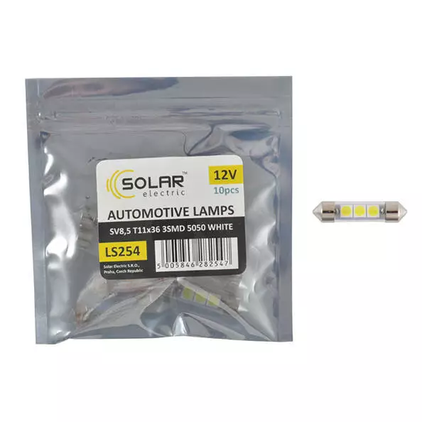 LED автолампа SOLAR 12V SV8.5 T11x36 3smd 5050 white 10шт (LS254_P)