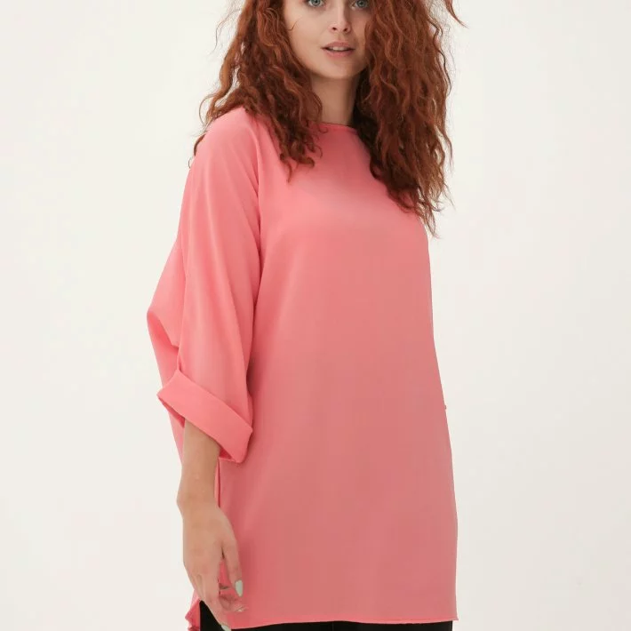 Блуза-туніка з легкого структурного креп-шифону, горловина-човник,