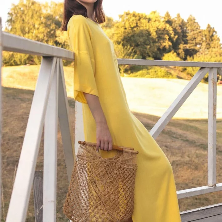 Довга сукня-футболка, прямого крою, з натуральної тканини приємною