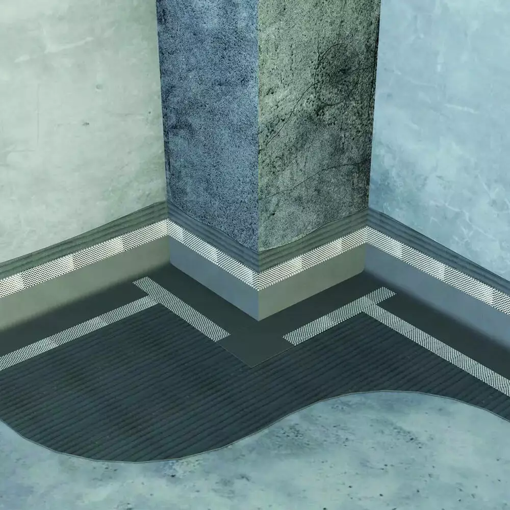 Уплотняющая лента типа TU производится из нетканого полипропиленового материала. Одна сторона поверхности ленты покрыта термопластическим эластомером по центру. Поверхность полипропиленового пласта имеет текстуру небольших ромбов. Такая структура служит для создания более плотного контакта поверхности с изолирующим материалом (однокомпонентной гидроизоляцией). В отличие от ленты с гладкой эластомерной поверхностью, с этой можно добиться лучшего сцепления материалов. Лента лучше всего подходит для стен и полов во влажных помещениях.