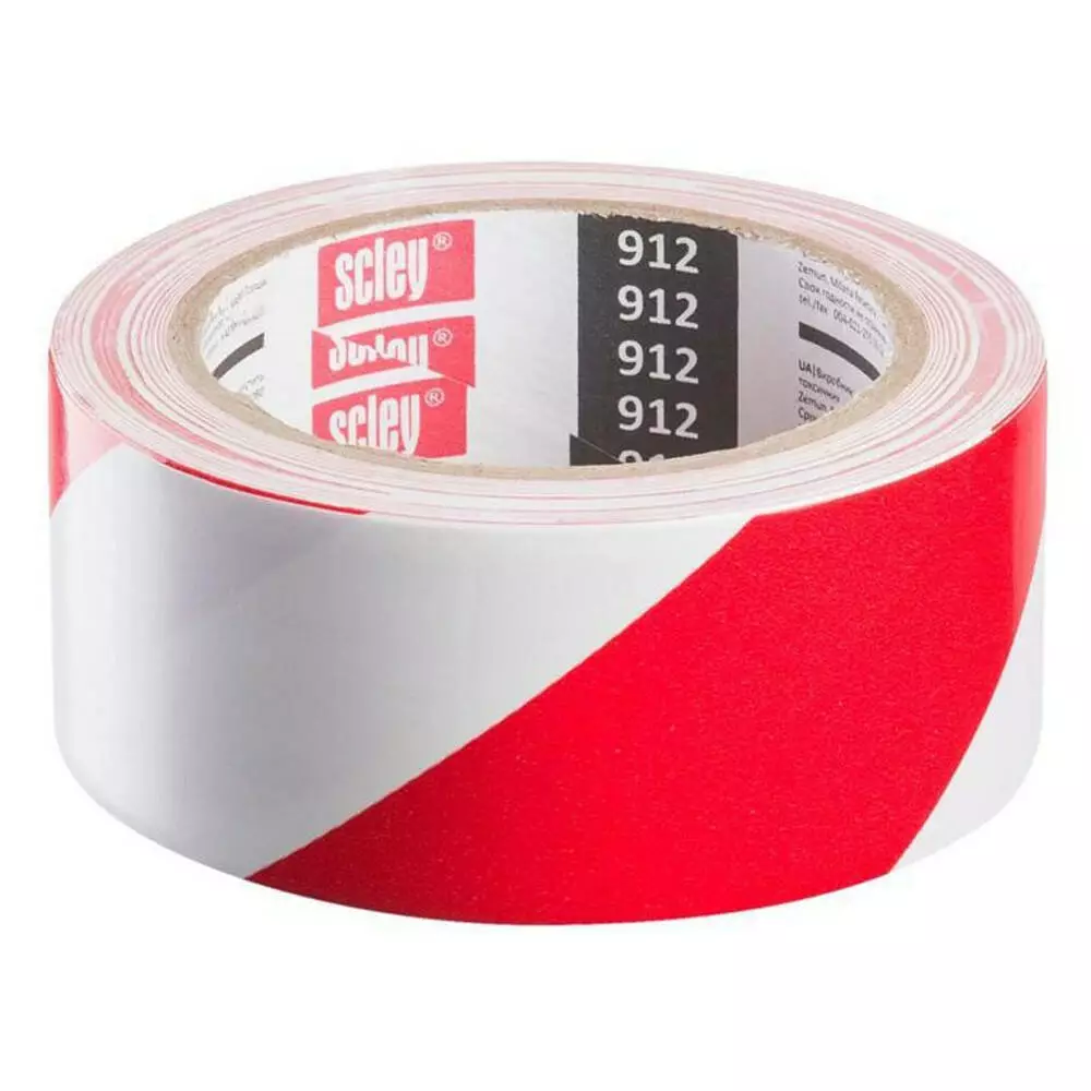 Лента маркировочная клейкая 48 мм 33 м SCLEY 912 красно-белая (0370-123348) с высокой прочностью приклеивания, толстая и прочная.