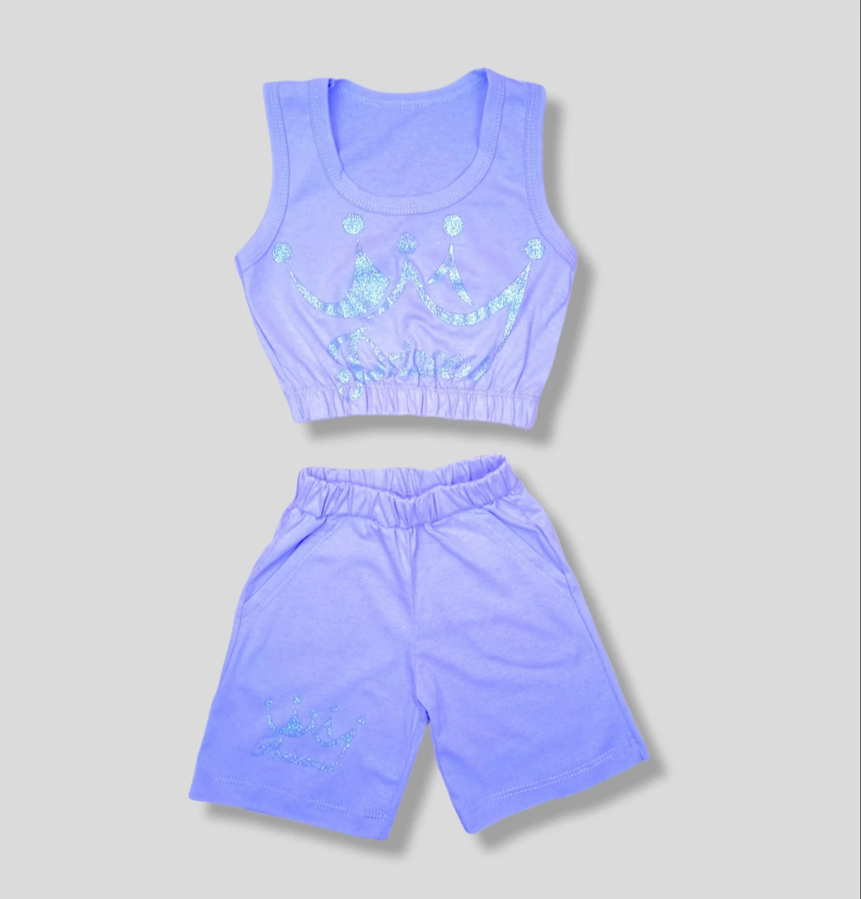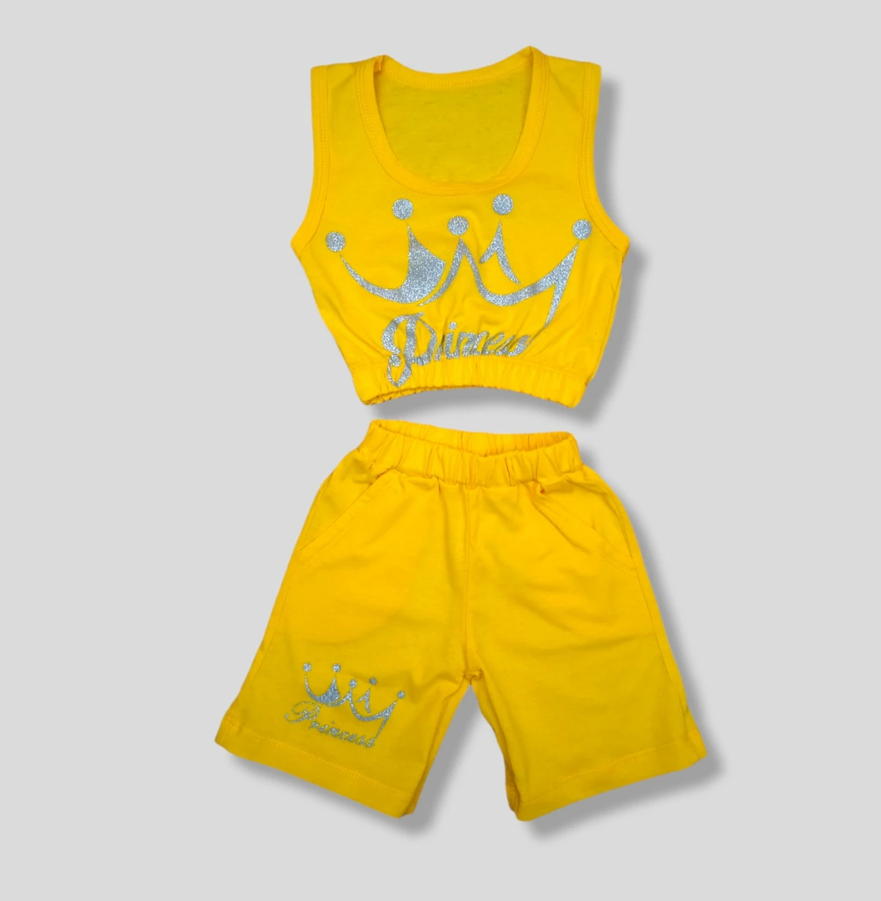 Комплект летний однотонный для девочки с глиттером: топ на резинке