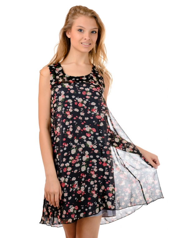 Женский летний короткий сарафан. Ткань - шифон. Свободного силуэт , хорошо садится на любую фугуру. Длина изделия 91см.