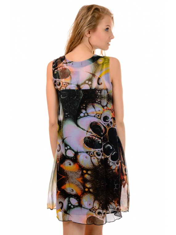 Женский летний короткий сарафан. Ткань - шифон. Свободного силуэт , хорошо садится на любую фугуру. Длина изделия 91см.