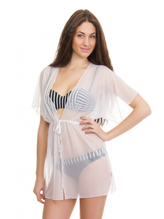 Пляжная туника из мелкозернистой стрейч-сетки. Украшена камнями-стразами. Размер универсальный 42-50.