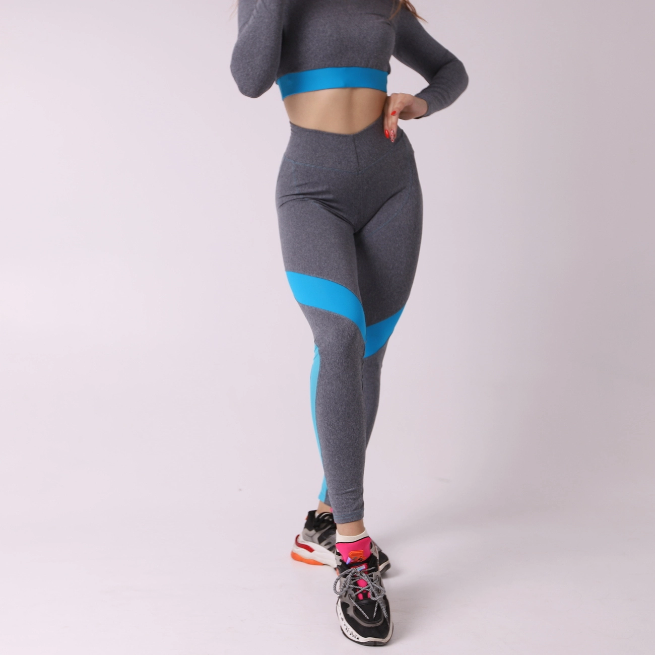 Стильная спортивная одежда может хорошо смотивировать  на тренировке. Наши леггинсы именно такие! Сочетание серого и голубого создаст невероятный образ и хорошое настроение! Изготовлены из бифлекса (80% нейлон, 20% спандекс).  Скрывают недостатки, удобная высокая посадка, отличная утяжка, не сковывают движения. При занятии спортом, вы будете чувствовать себя комфортно и  уверенно, так как они не просвечиваются!